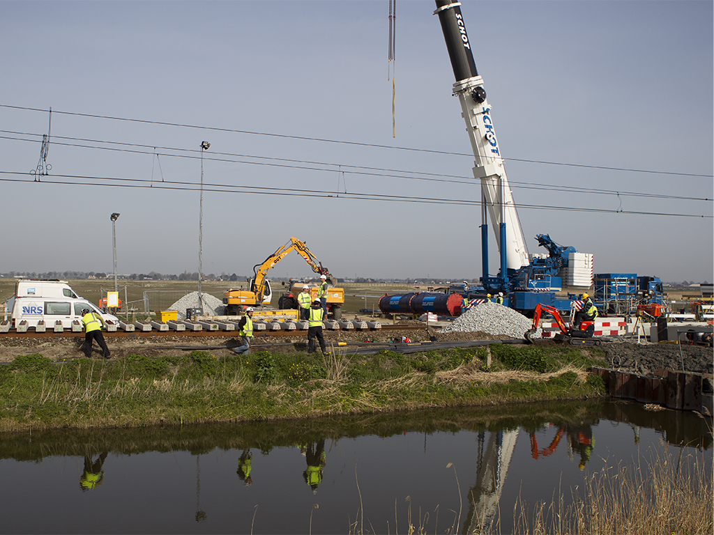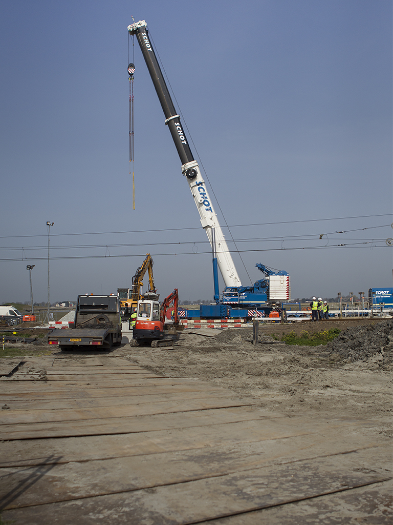 OOSTERBLOKKER – Er wordt regelmatig hard gewerkt in de regio! Westfriese Zaken houdt voor jou bij wat er gebeurt, waar dat gebeurt en waarom dat gebeurt. In opdracht van gemeente Drechterland werkt aannemingsbedrijf Dekker aan de spoortunnel in Oosterblokker. In december is begonnen met de werkzaamheden en afgelopen weekeinde werden de tunneldelen dan eindelijk op hun plek gehesen. Achter het gebouw ‘De Kieft’ waar onder andere de basisschool en het kinderdagverblijf zich bevinden, werd druk gewerkt aan de tunnel die de bebouwing van Blokker met de waterberging Drachterveld aan de andere kant van het spoor verbindt. Voor de aanleg van de cruciale onderdelen van de brug is dit weekeinde het treinverkeer op zaterdag en zondag stilgelegd. Drachterveld beslaat 26 hectare natuur, het is een ecologisch beheerd agrarisch gebied waar gefietst en gewandeld kan worden. Daarnaast doet het dienst als waterberging. Er kan water opgeslagen worden in geval van wateroverlast. De nieuwe tunnel is in de zomer van 2014 klaar.